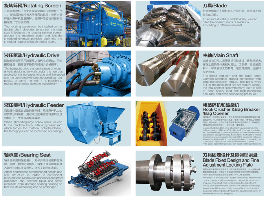 環(huán)創(chuàng)DS系列雙軸撕碎機(jī)可滿足各行業(yè)的廢料回收要求,適合撕碎較厚難碎的物料如:電子垃圾、硬質(zhì)塑料、金屬、木材、廢舊橡膠、包裝桶、托板等?苫厥詹牧戏N類(lèi)繁多,經(jīng)撕碎后的物料可直接回收或根據(jù)需求作進(jìn)一步細(xì)化處理。適用于工業(yè)廢棄物回收、醫(yī)療回收、電子制造、托板制造、木材加工、生活垃圾回收、塑料回收、輪胎回收、造紙等行業(yè)的應(yīng)用。該系列雙軸撕碎機(jī)擁有低速、大扭矩、低噪音等特點(diǎn),采用西門(mén)子編程系統(tǒng),可以自動(dòng)控制、設(shè)有啟動(dòng)、停止、反轉(zhuǎn)以及超載自動(dòng)反轉(zhuǎn)控制功能。